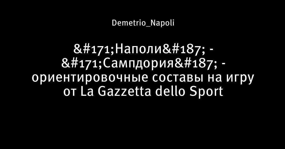 «Наполи» - «Сампдория» - ориентировочные составы на игру от La Gazzetta dello Sport