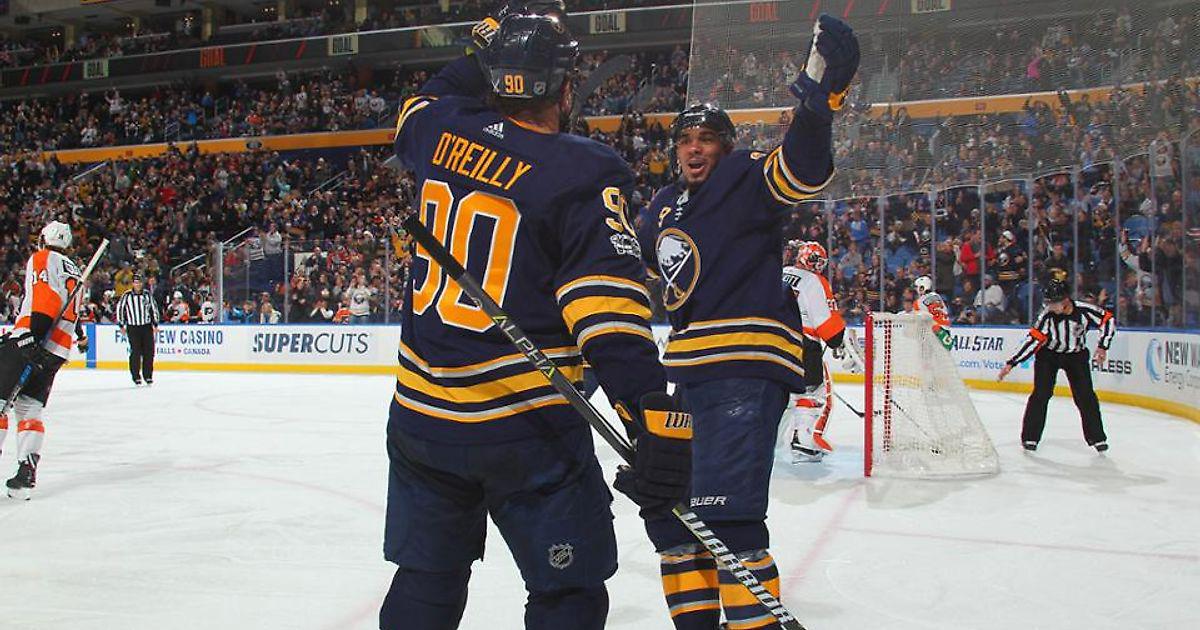 "Буффало Сейбрз"-"Филадельфия Флайерс" 4:2.Победную точку в тамтче за секунду до конца поставил Джек Айкел,забросивший шайбу в пустые ворота.У "клинков" 2 шайбы забросил Джейк Айкел,2 результативные передачи отдал Марко Скандела,также по 2 очка (1+1) набрали Райан О'Райлли и Эвандер Кейн,Робин Ленер отразил 33 броска.У "лётчиков" по 2 результативные передачи отдали Клод Жиру и Якоб Ворачек.Хозяева прервали серию из 3 поражений подряд.