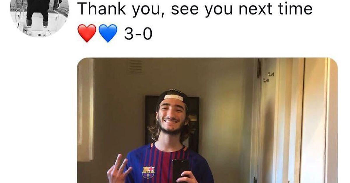 23 декабря 2017, 17:46 Сын Жозе Моуриньо празднует победу «Барселоны» Твиттер Моуриньо младшего! Автор Сергей Таров Этот пост опубликован в блоге на Трибуне Sports.ru. Присоединяйтесь к крупнейшему сообществу спортивных болельщиков! Другие посты блога Barça Ла Лига Жозе Моуринью Барселона
