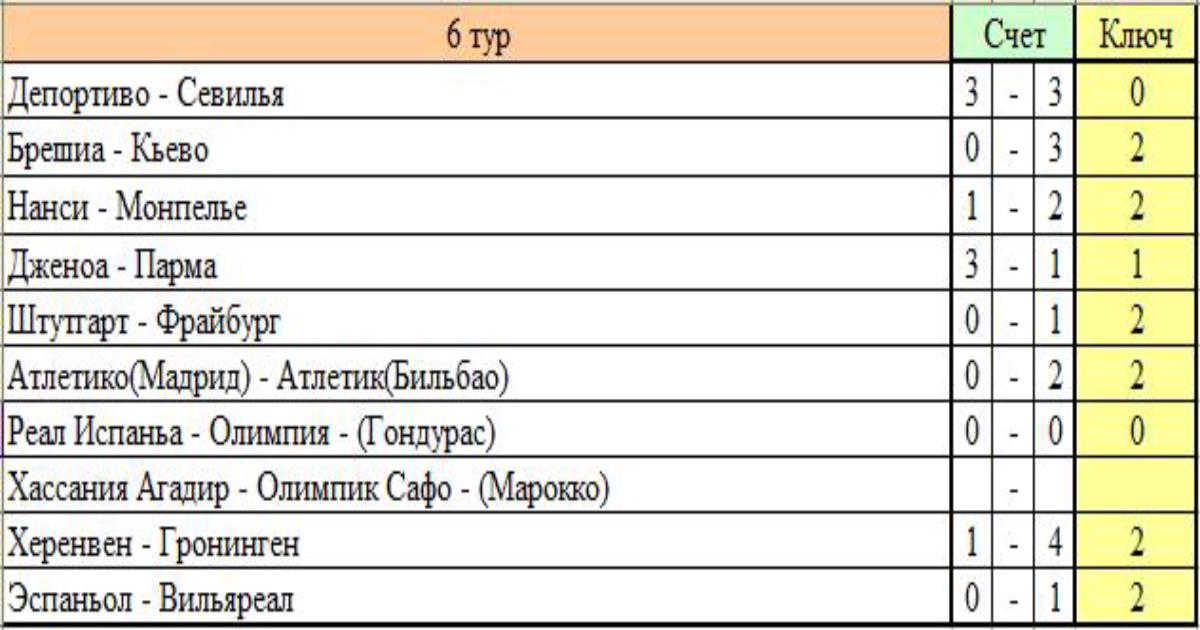Результаты матчей, сыгранных в 6-м туре (матч Хассания Агадир - Олимпик Сафо - (Марокко) перенесен):