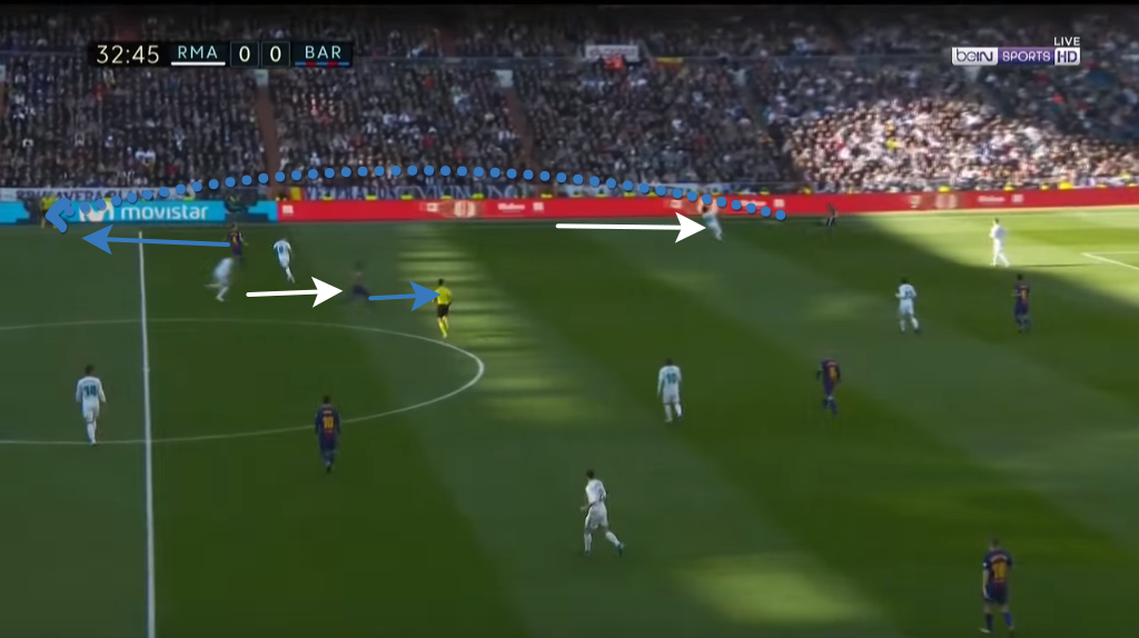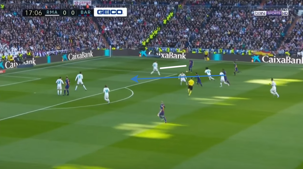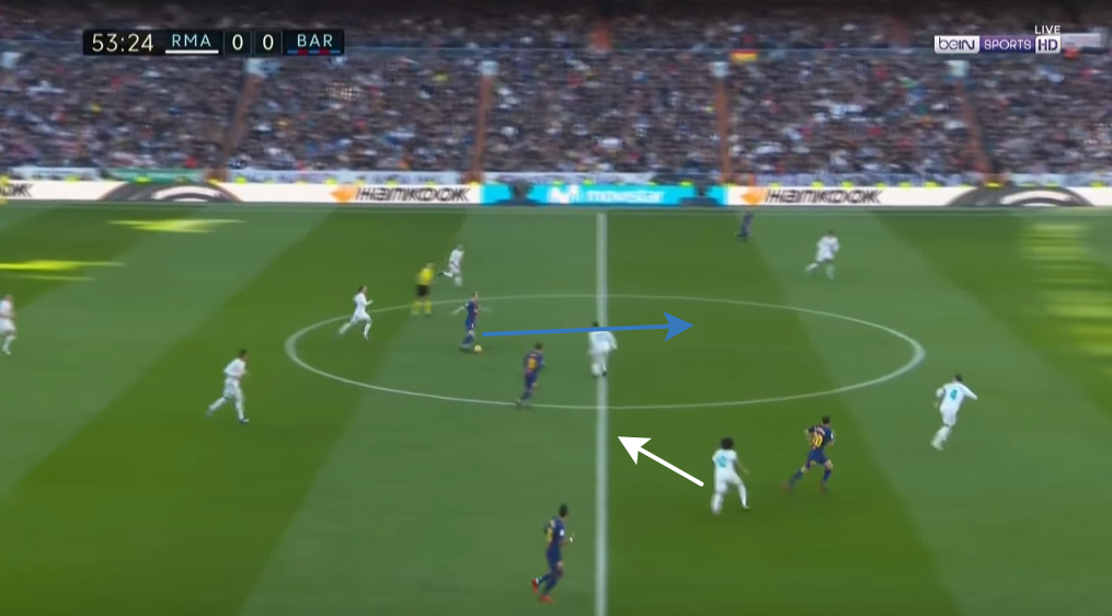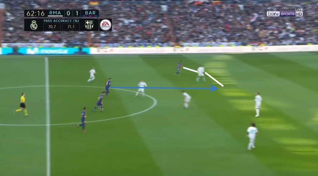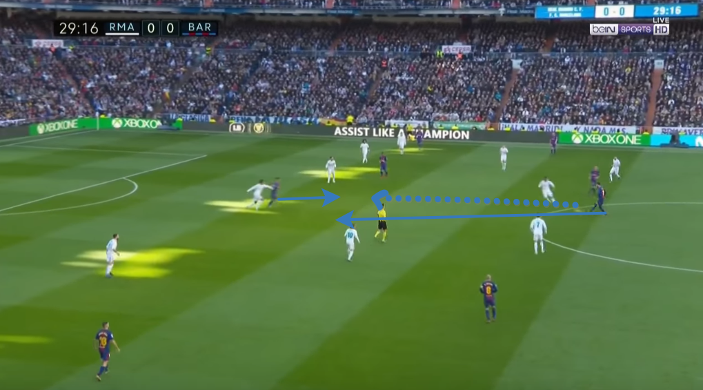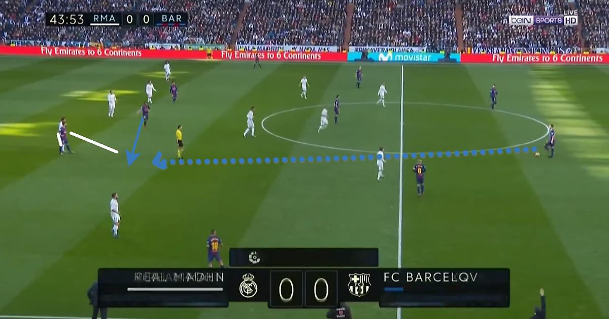 Таким образом, соперники Реала могут получить преимущество в нападении простыми забеганиями, поймав момент, когда крайние защитники находятся высоко, а центральные защитники играют один в один.