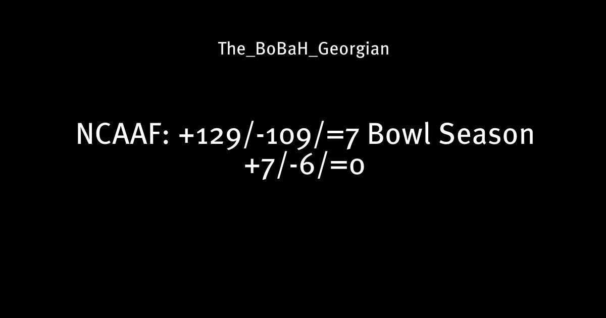 NCAAF: +129/-109/=7 Bowl Season +7/-6/=0