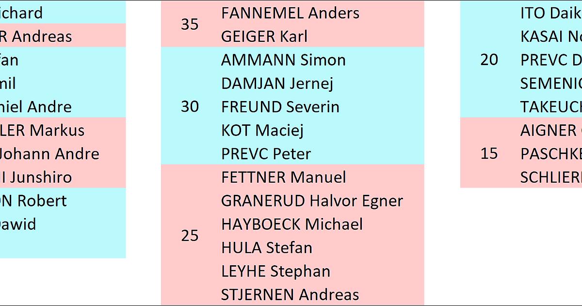 plukh (Пётр Ильич): KRAFT Stefan, STOCH Kamil, FORFANG Johann Andre, PREVC Peter, SCHLIERENZAUER Gregor