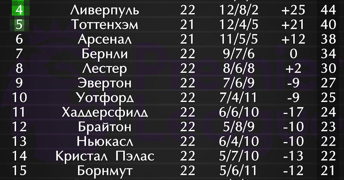 Турнирные таблицы топ-чемпионатов Европы
