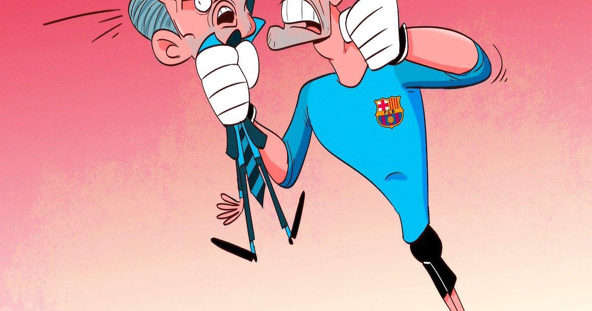 Наверно отсылка к матчу Интер Барселона 2010 в лч, когда после победы маур выбежал на Камп Ноу и начал демонстративно «праздновать» перед болельщиками Барсы, а Вальдес попытался «охладить» пыл Маура
