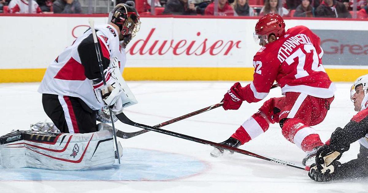 "Детройт Ред Уингз"-"Оттава Сенаторз" 2:1(ОТ).Победу "красным крыльям" в овертайме принёс Андреас Атанасиу,забросивший одну из 2 своих шайб за игру.Джими Ховард отразил 33 броска.Хозяева одержали 3 победу подряд.