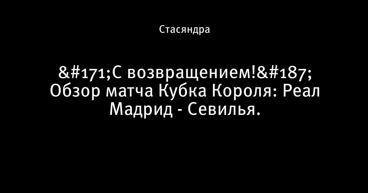 «С возвращением!» Обзор матча Кубка Короля: Реал Мадрид - Севилья.