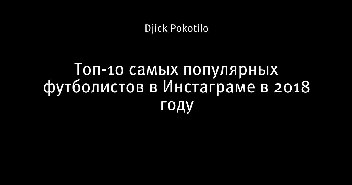6 января 2018, 20:54 Топ-10 самых популярных футболистов в Инстаграме в 2018 году Автор Djick Pokotilo Этот пост опубликован в блоге на Трибуне Sports.ru. Присоединяйтесь к крупнейшему сообществу спортивных болельщиков! Другие посты блога Foot The Goal