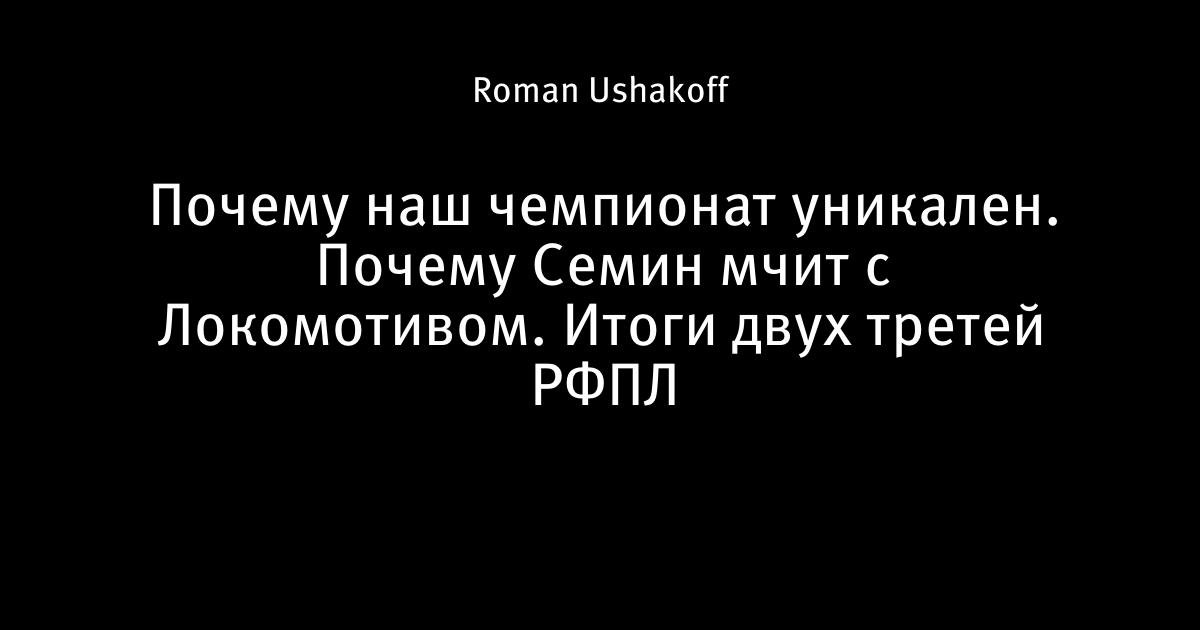 Почему наш чемпионат уникален. Почему Семин мчит с Локомотивом. Итоги двух третей РФПЛ