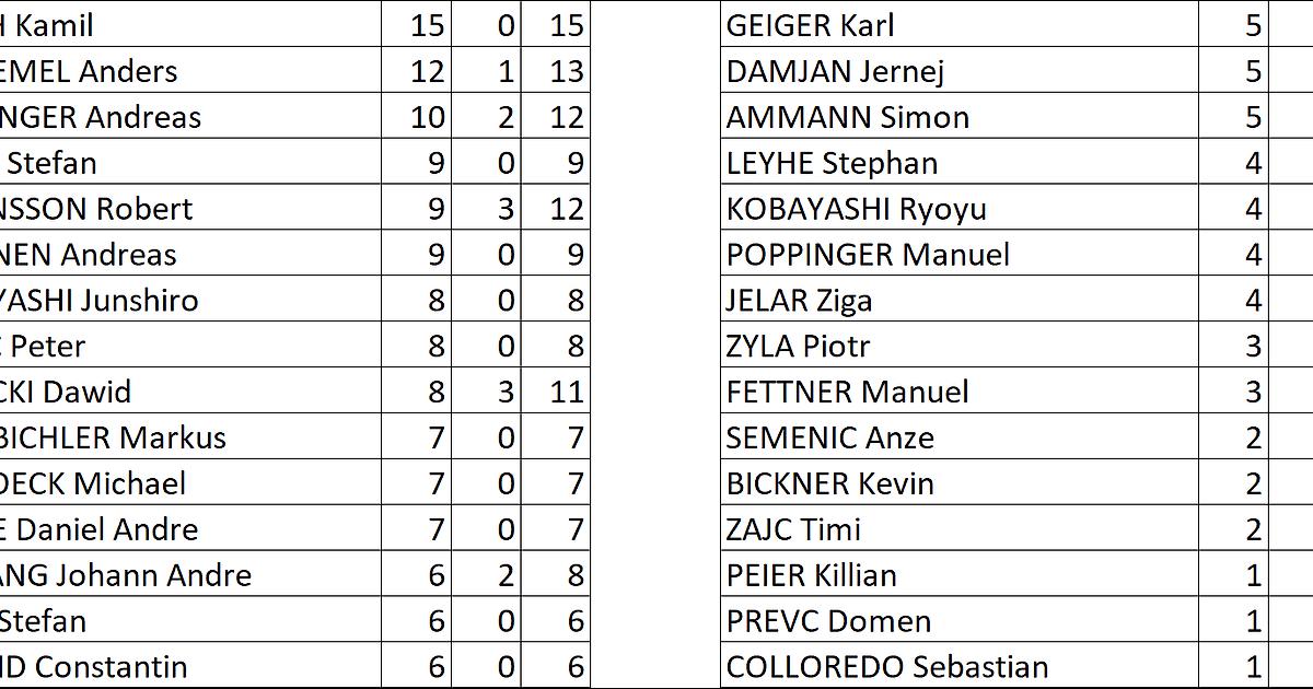 boozer17 (Короли): STOCH Kamil, BARTOL Tilen, TANDE Daniel Andre, KOBAYASHI Junshiro, STJERNEN Andreas x2