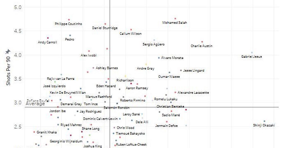2) Коутиньо бил часто, но из не совсем очевидных позиций (дальние удары – это его), а вот Салах при таком же количестве ударов за матч был чуть опаснее.