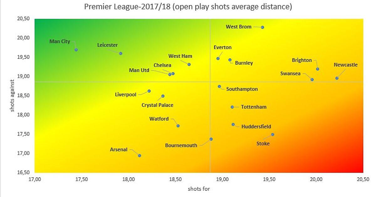 Больше всего удивляет позиция «Лестера» - они хороши в обоих категориях. «Арсенал» немного удручает - не факт, что удастся найти в Европе команду, которой бьют сильно ближе.