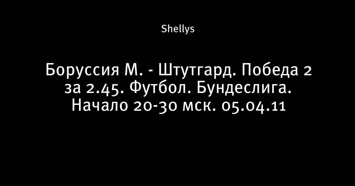 Боруссия М. - Штутгард. Победа 2 за 2.45. Футбол. Бундеслига. Начало 20-30 мск. 05.04.11