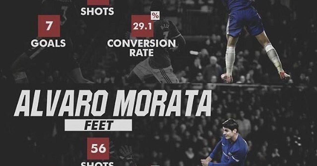 Статистика ударов Альваро Мораты при игре головой и ногами