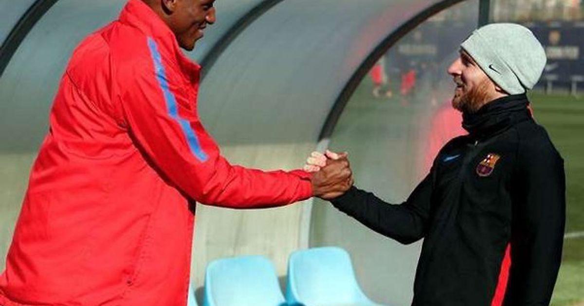 Фото дня. Лео Месси поприветствовал новичка «Барсы» Йерри Мину