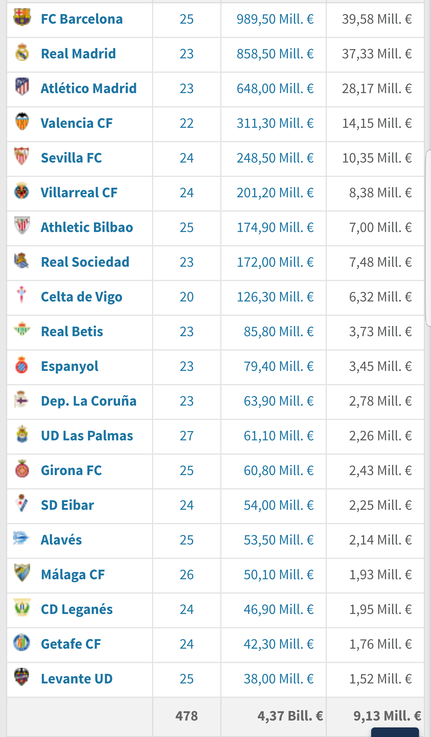 Испанская Примера отстает и только благодаря: Реалу,Барселоне и Атлетико не так сильно.