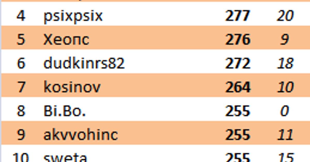 Прорыв недели : dudkinrs82, КинЗю, alexkum +1 место