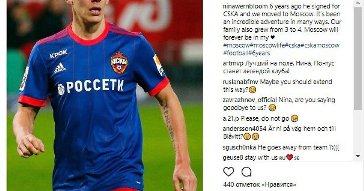 Пост жены Вернблума многие связали с предстоящим уходом Понтуса из ЦСКА, однако агент шведа выступил с опровержением.