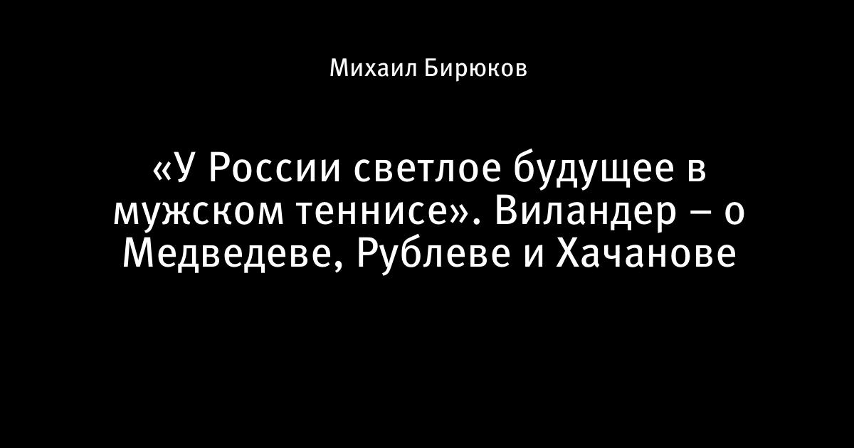 «У России светлое будущее в мужском теннисе». Виландер – о Медведеве, Рублеве и Хачанове