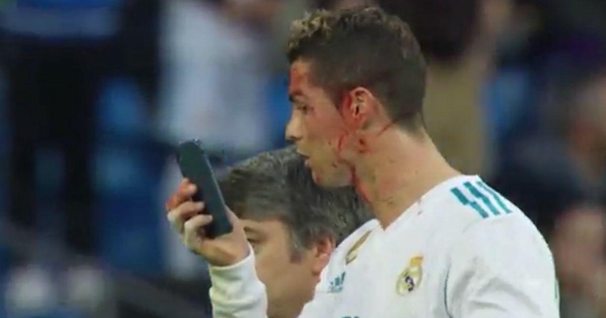 Ronaldo gets up with a face full of blood and a brace to his name. pic.twitter.com/CDsxgKNrHc