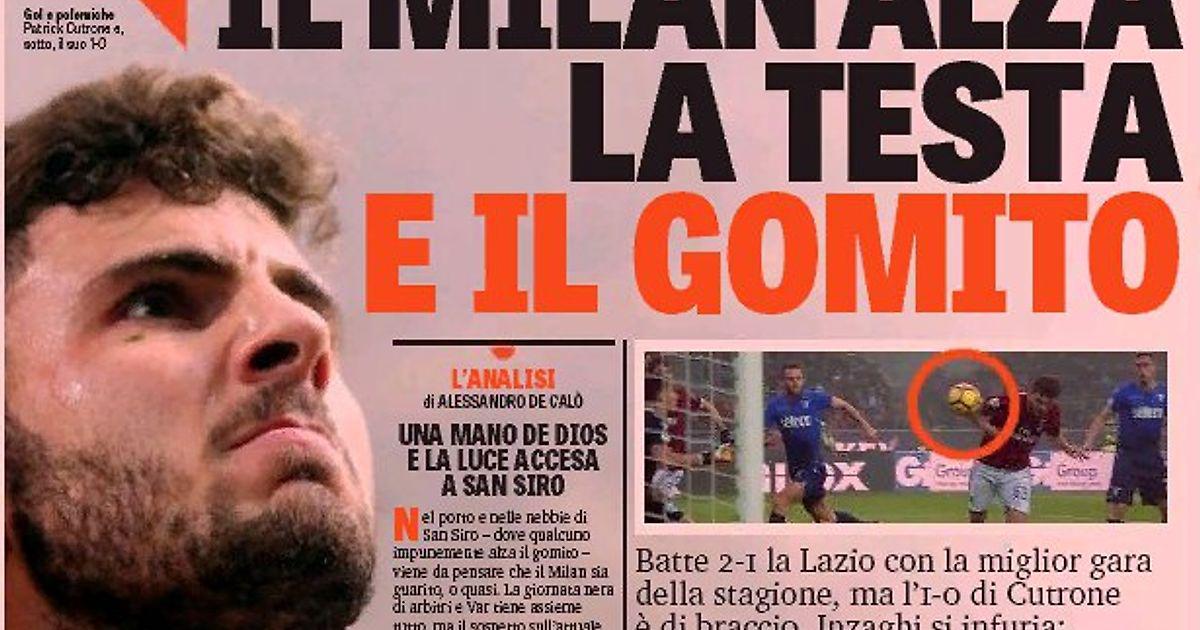 «Милан» поднимает голову и локоть. Заголовки Gazzetta, TuttoSport и Corriere за 29 января