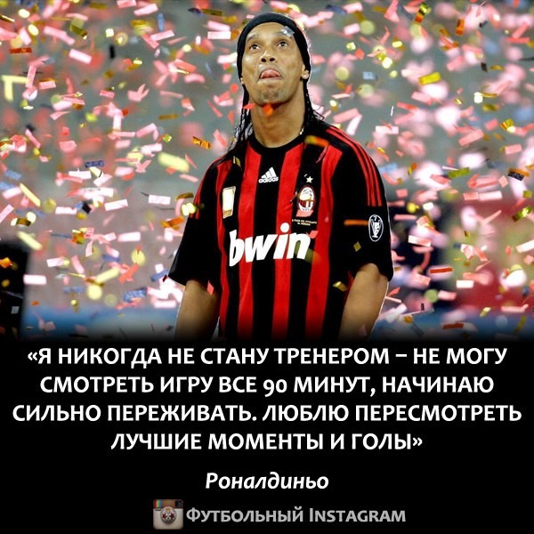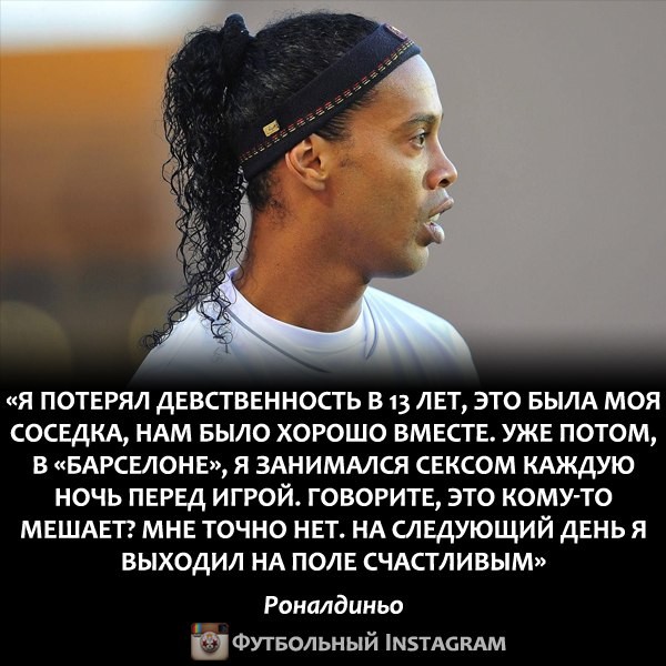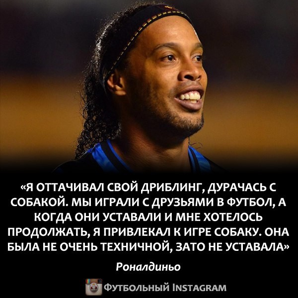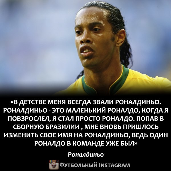 Мне кажется единственный футболист,который действительно всегда старался насладиться игрой (-ЧМ)вне зависимости от чемпионата,турнира,уровня команды и т.д..Все на природном таланте,влегкую...очень редко,а по мне так и вообще не воспользовался на все 100 своими как раньше говорили "супер ударами",а сейчас помоему "скилами"!!!Короче говоря Рональдинь-кайфажер,и это его "трагедия"