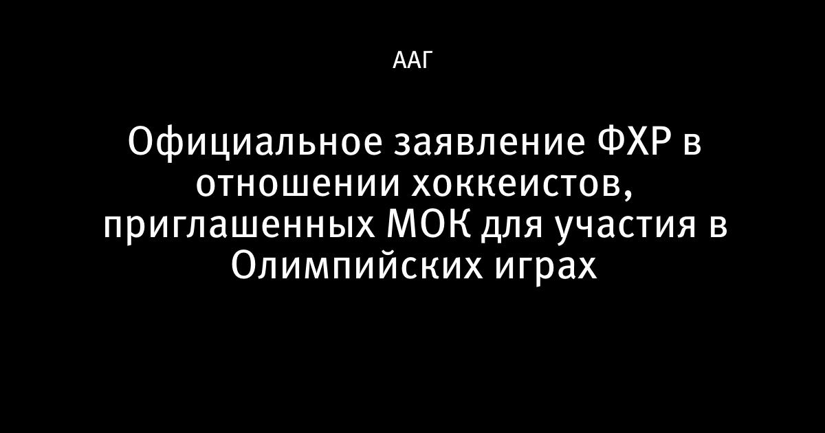 Официальное заявление ФХР в отношении хоккеистов, приглашенных МОК для участия в Олимпийских играх