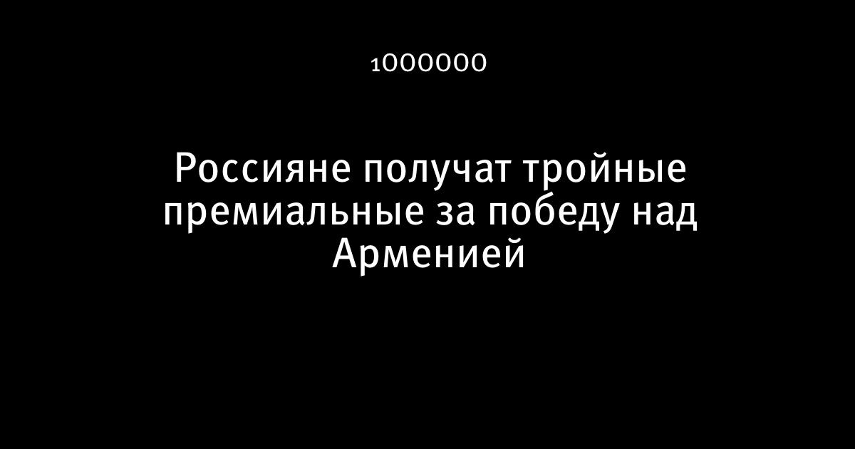 Игроки сборной России получат тройные премиальные за победу над Арменией в отборочном матче Евро-2012. "Мы проанализировали последние неудачи нашей команды в товарищеских матчах и решили, что футболисты были недостаточно простимулированы в финансовом плане. Матч с набравшей ход сборной Армении является стратегически важным в борьбе за попадание на Чемпионат Европы, поэтому было принято решение об увеличении премиальных за победу в этой игре", - сообщает источник из подвального помещения РФС.