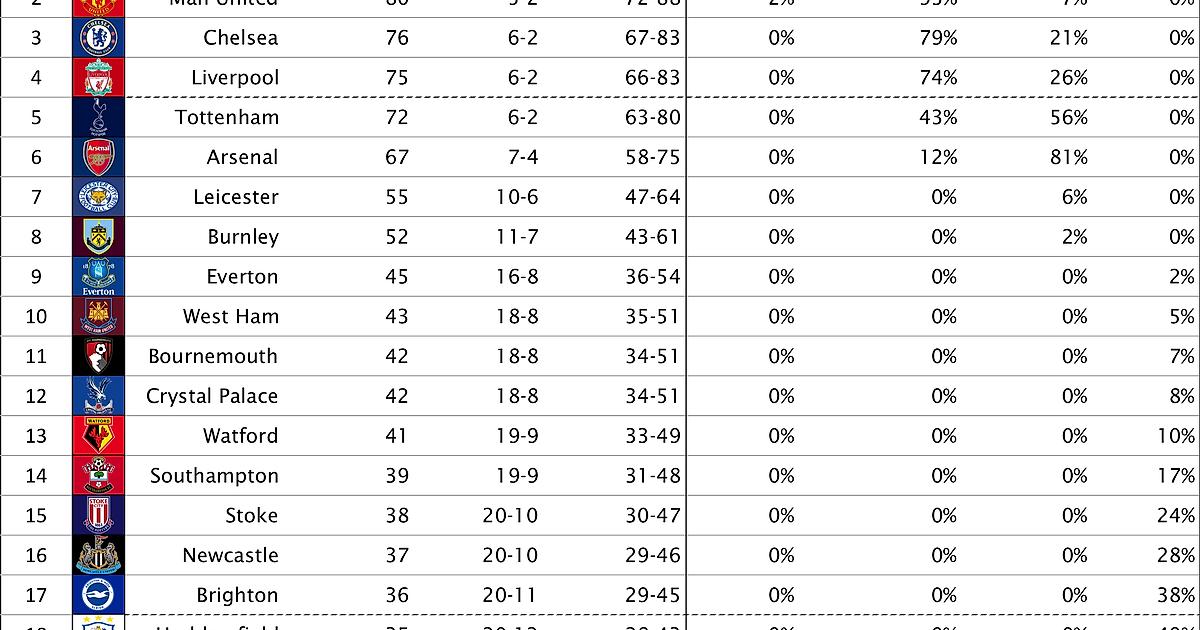 Прогноз на итоговую таблицу АПЛ после 24 туров