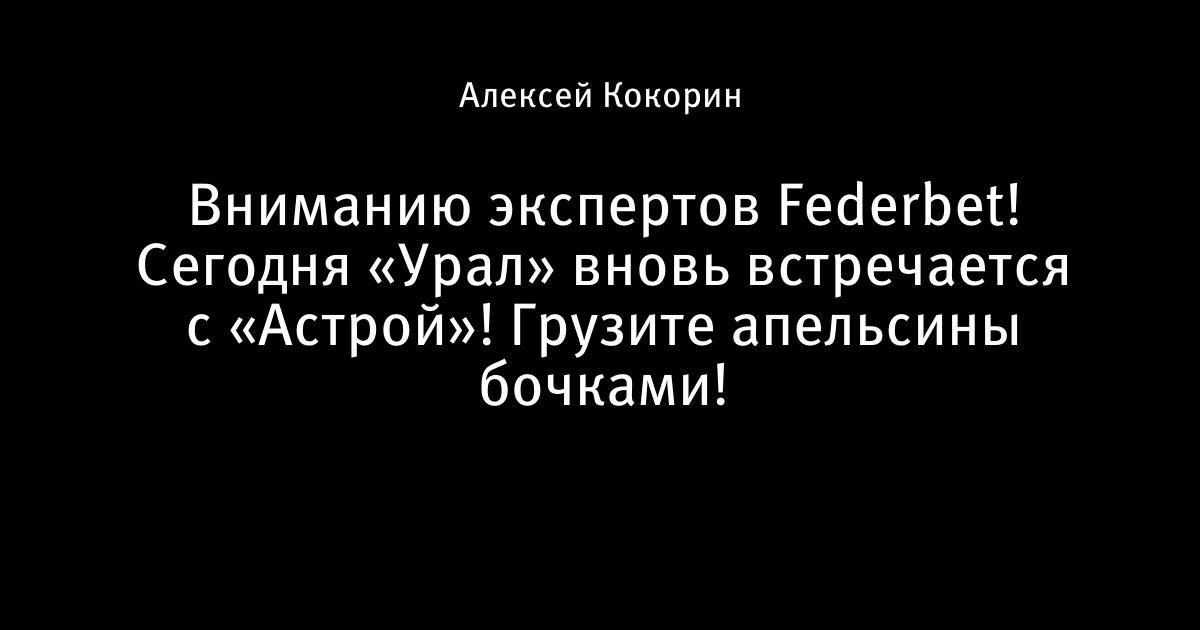 Вниманию экспертов Federbet! Сегодня «Урал» вновь встречается с «Астрой»! Грузите апельсины бочками!