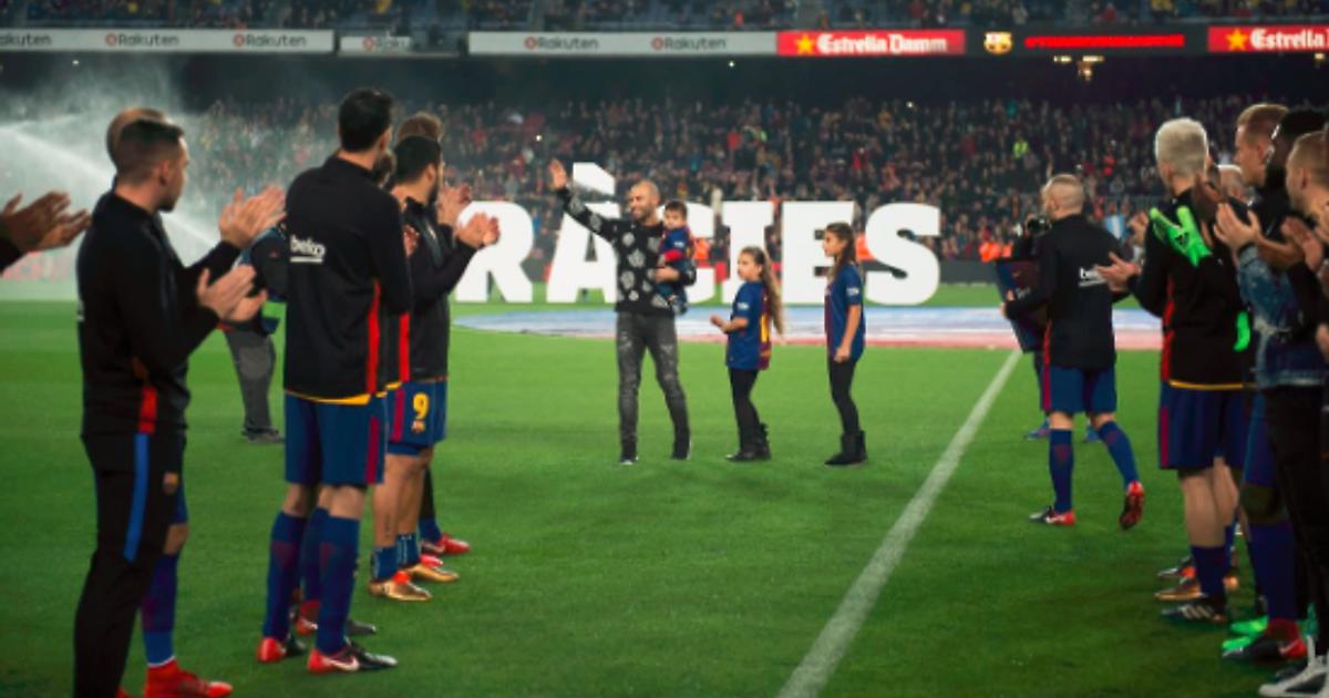 «Камп Ноу» прощается с Маскерано. Сегодня перед кубковым матчем с «Эспаньолом», игроки «Барсы» устроили Хавьеру почетный коридор: