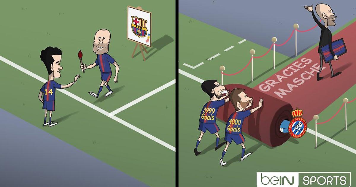 26 января 2018, 20:37 Барселона «красиво» провожает Хавьера Маскерано Месси и Суарес забивают 3999 и 4000 голы за Барселону Автор Chabanyuk Этот пост опубликован в блоге на Трибуне Sports.ru. Присоединяйтесь к крупнейшему сообществу спортивных болельщиков! Другие посты блога Футбольные карикатуры 🎭 Хавьер Маскерано Барселона Лионель Месси Луис Суарес