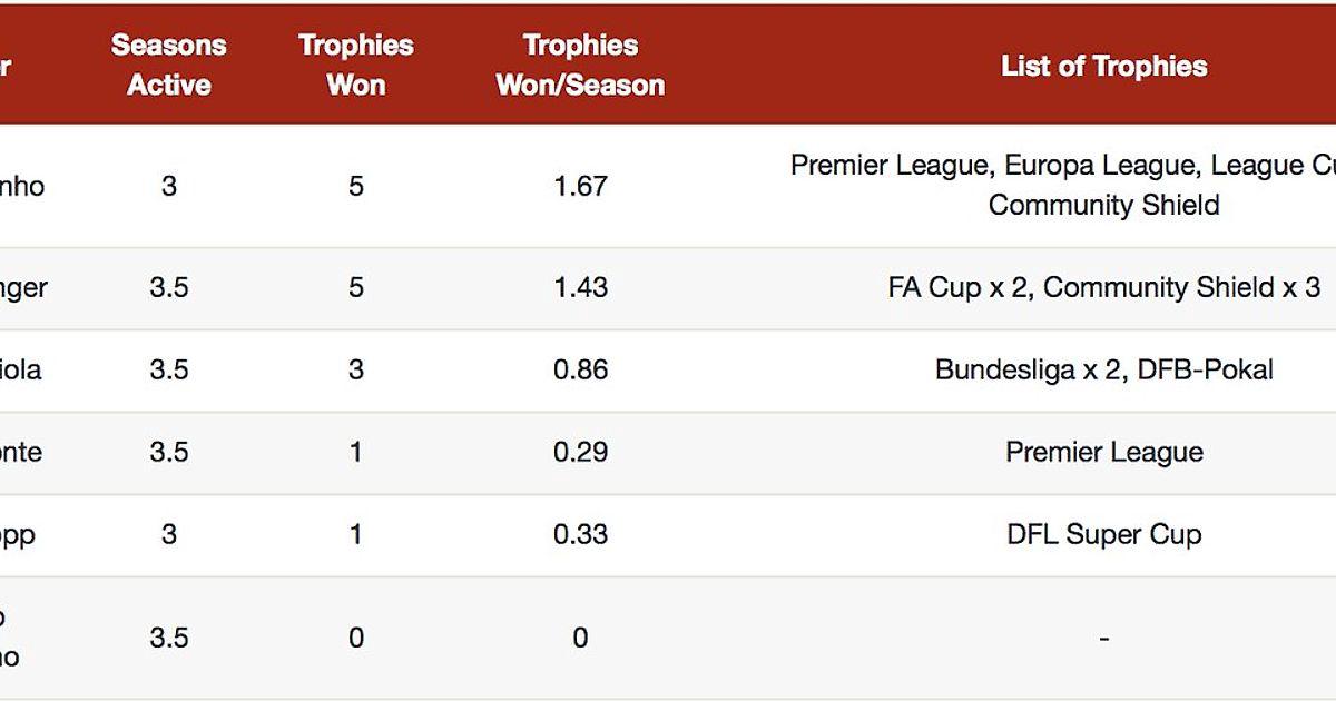 Трофеи, выигранные менеджерами клубов «Биг-6» АПЛ, начиная с сезона 2014/2015