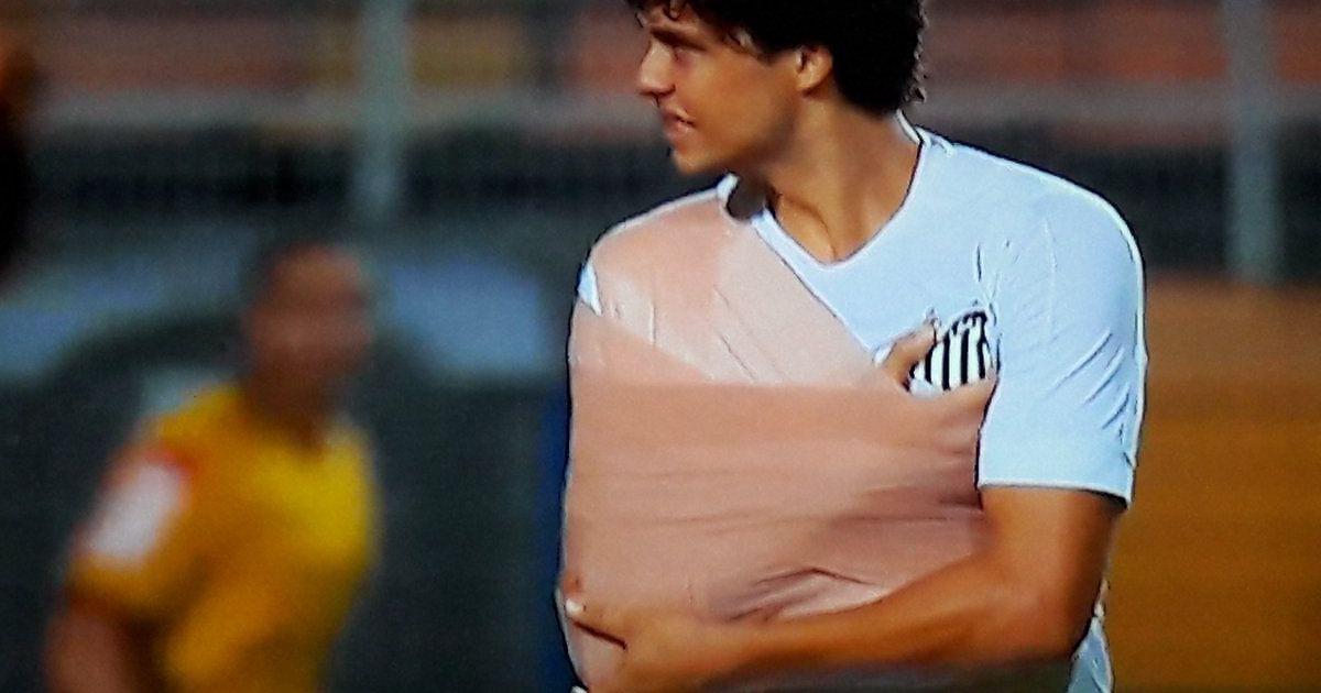 Victor Ferraz, who was being booed by his own fans after recent transfer rumours, dislocated his shoulder then came back on like this as #Santos had made 3 subs. pic.twitter.com/vELzyoN4ZK