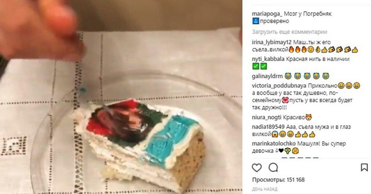 «Всю жизнь мечтала попробовать мозг мужа». Жена Павла Погребняка ест торт с фотографией футболиста