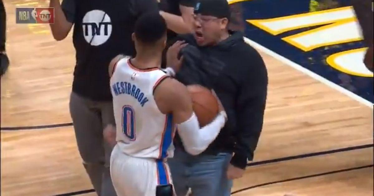 Some fan got in Russell Westbrook’s face and he was lucky he didn’t catch the hands.pic.twitter.com/36JzJQYHou