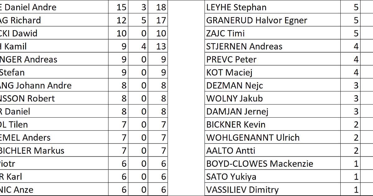 hakkinen (Неман): STOCH Kamil, GRANERUD Halvor Egner, KUBACKI Dawid, BARTOL Tilen, HULA Stefan x2