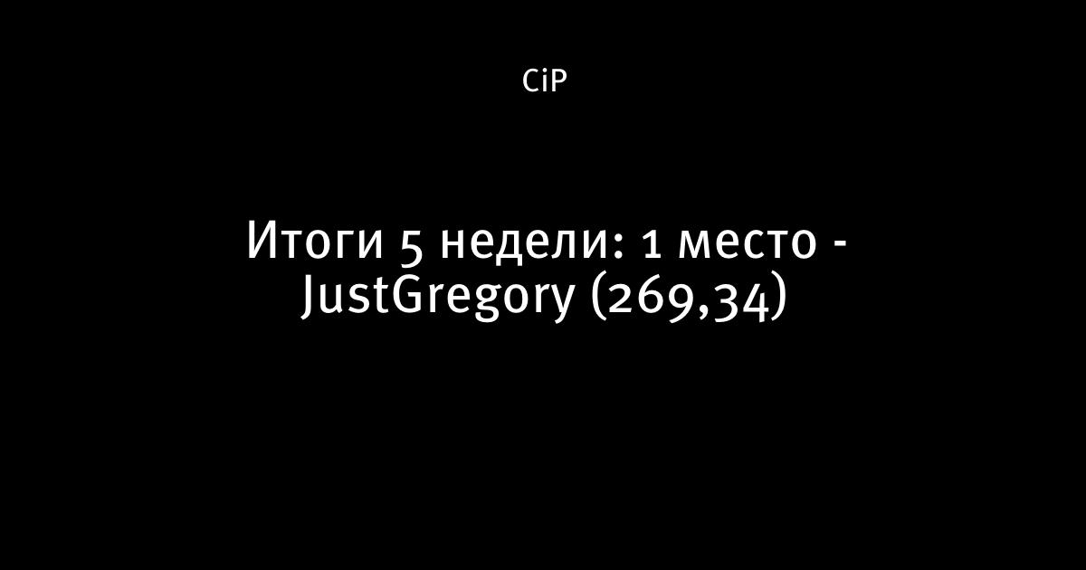 Итоги 5 недели: 1 место - JustGregory (269,34)