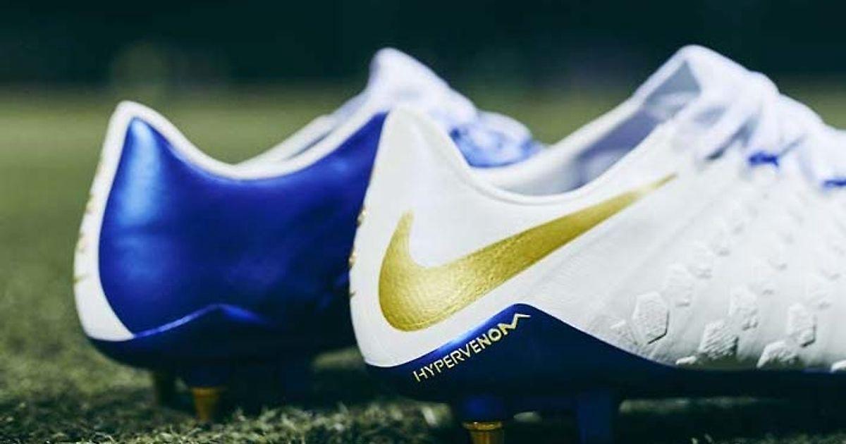 Модель называется Nike Hypervenom Phantom III Elite Kane. На шнурках и на внутренней стороне – фамилия нападающего, на задней части бутс – число 100.
