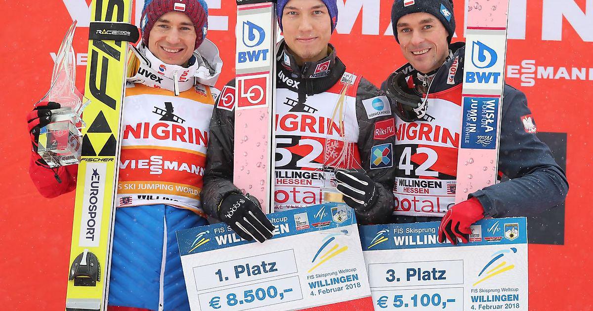 Лидер польской сборной Камил Стох провел средний для себя уикенд, но смог сохранить за собой желтую майку лидера, которую менее чем на сутки пришлось-таки отдать Рихарду Фрайтагу. Относительно плохое выступление в субботу своего подопечного Хорнгахер также связывает с неправильной позицией на разгоне, что удалось поправить к воскресенью. Сам Камил предпочитает не рассуждать на тему неудачного выступления своего конкурента, который занял лишь 28-ое место в воскресенье, а концентрироваться на своих прыжках. Приятным бонусом стала победа в мини-турнире Willingen5 и 25 тысяч евро призовых.