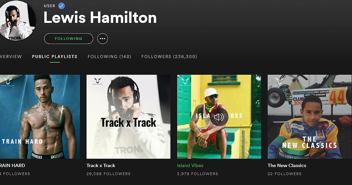 Оказывается, четырехкратный чемпион мира и пилот «Мерседеса» Льюис Хэмилтон ведет открытый аккаунт на Sportify.