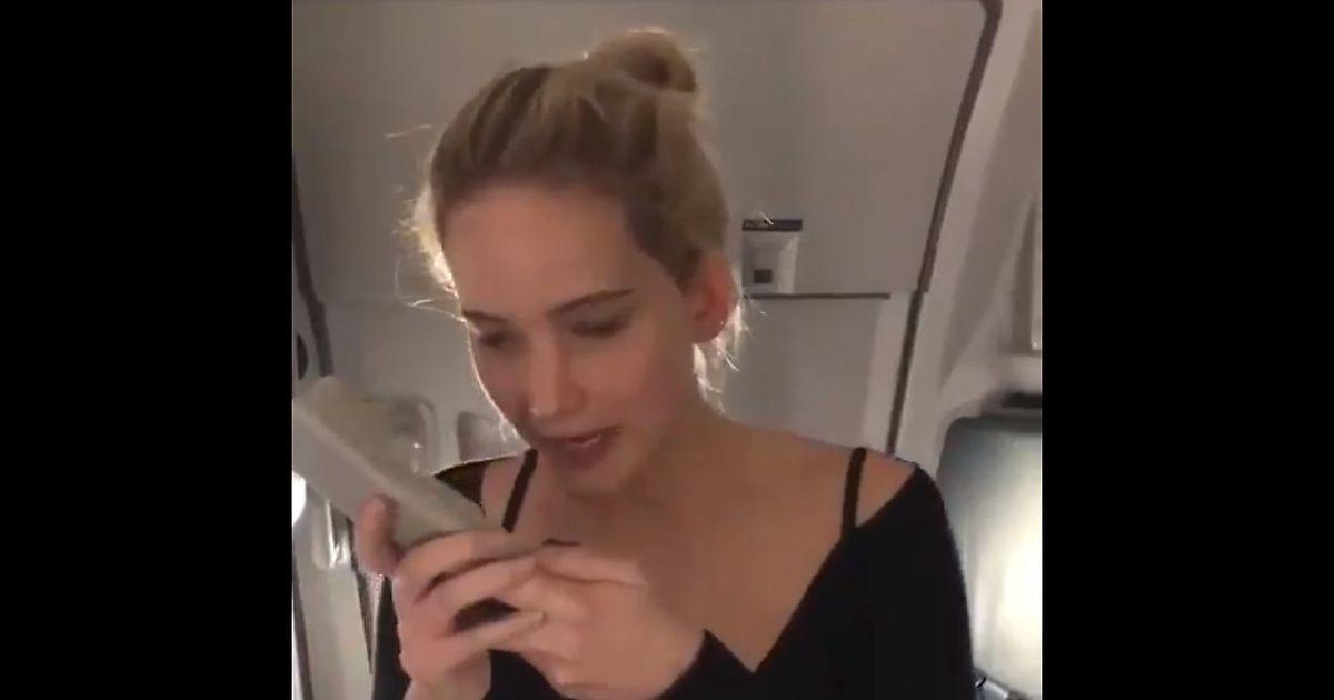 Дженнифер Лоуренс по громкой связи в самолете поддержала будущих победителей Супербоула. Но всем было наплевать