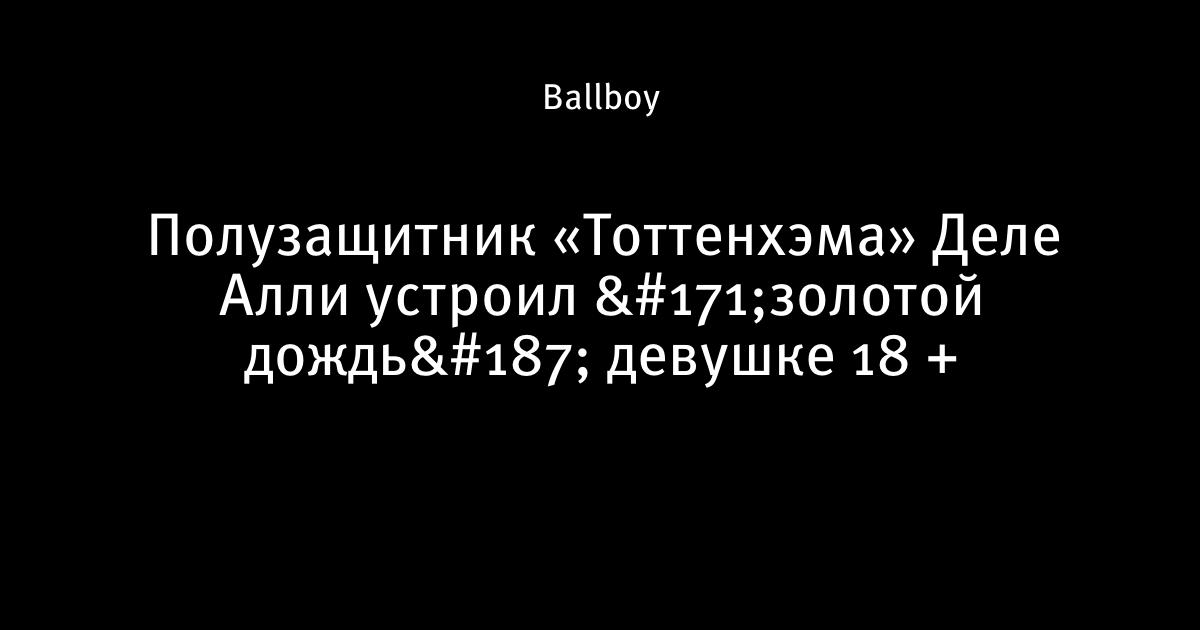 6 февраля 2018, 00:08 Полузащитник «Тоттенхэма» Деле Алли устроил «золотой дождь» девушке 😱 18 + Автор Ballboy Этот пост опубликован в блоге на Трибуне Sports.ru. Присоединяйтесь к крупнейшему сообществу спортивных болельщиков! Другие посты блога Ballboy Тоттенхэм Деле Алли
