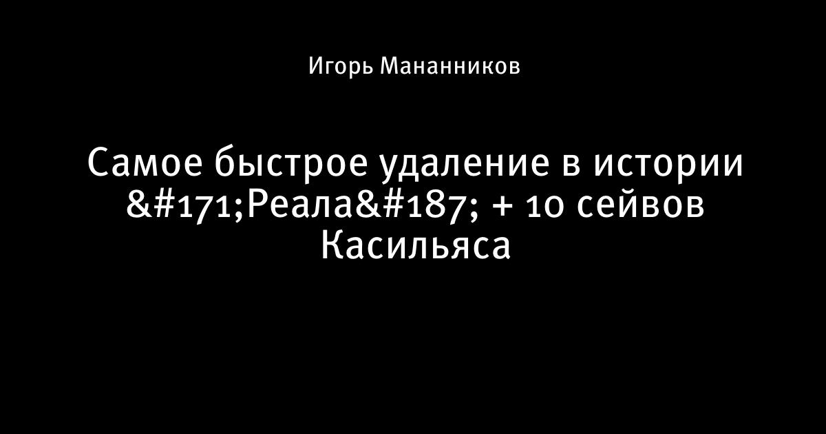 Самое быстрое удаление в истории «Реала» + 10 сейвов Касильяса