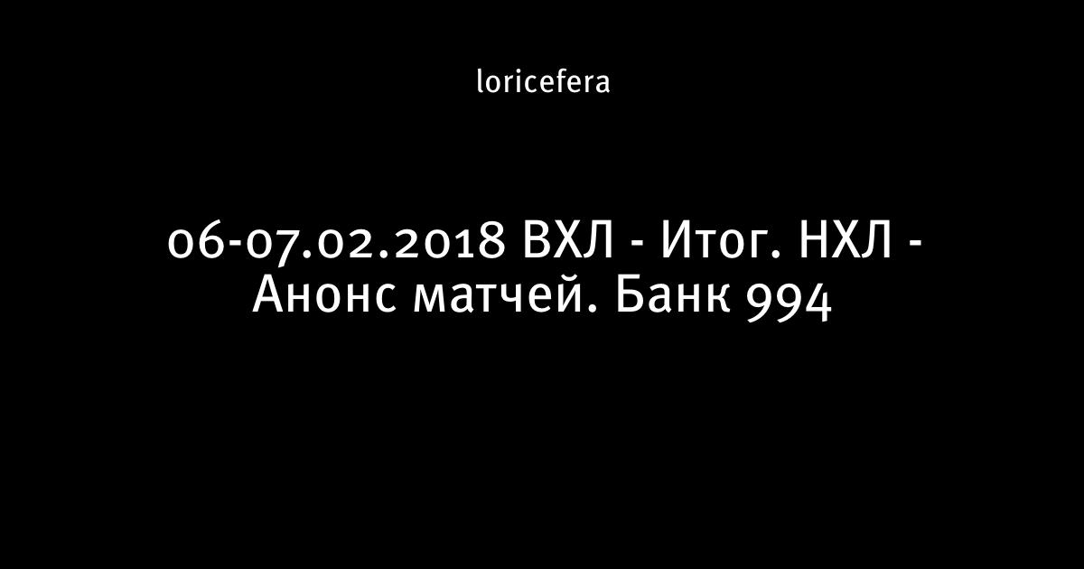 06-07.02.2018 ВХЛ - Итог. НХЛ - Анонс матчей. Банк 994
