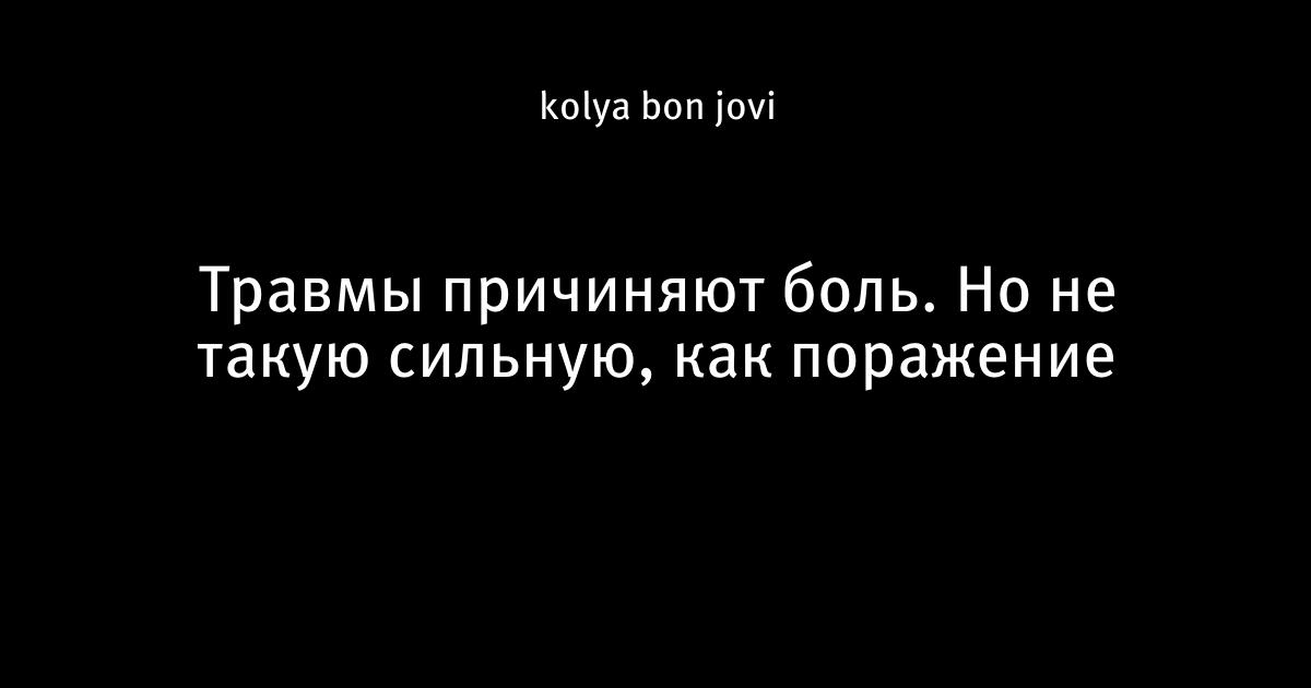 "Травмы причиняют боль. Но не такую сильную, как поражение"