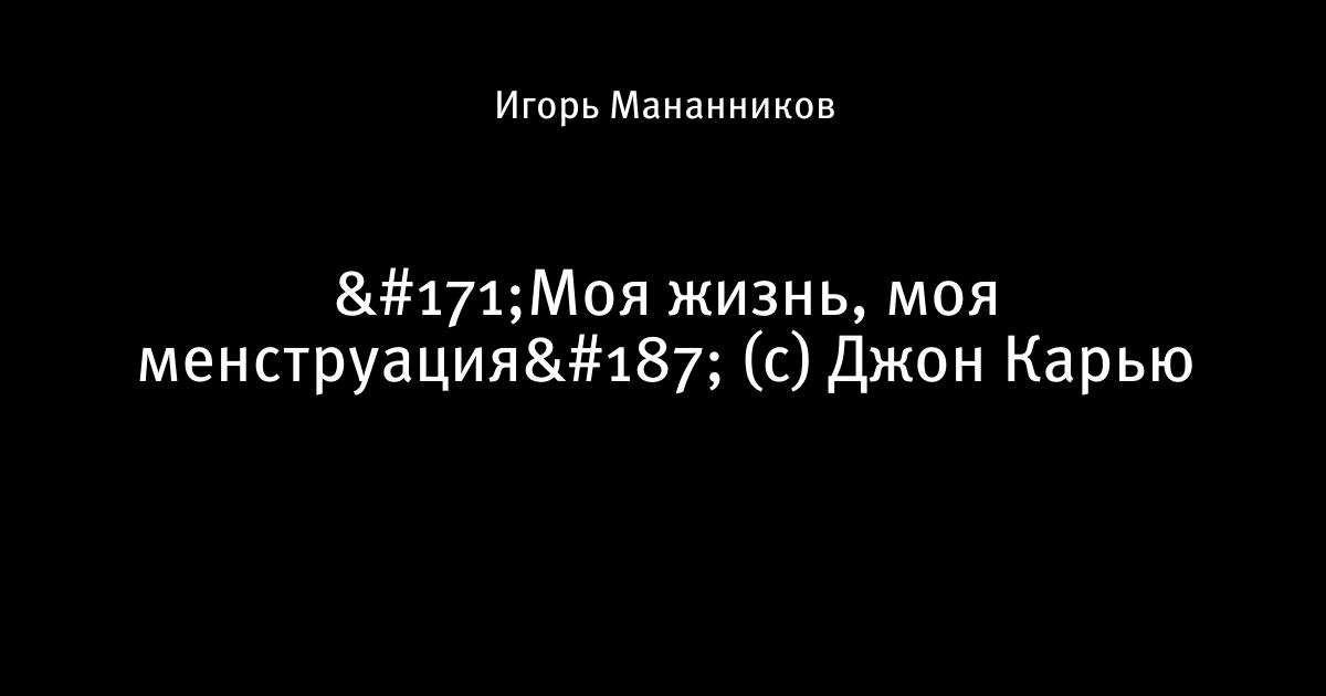 «Моя жизнь, моя менструация» (с) Джон Карью