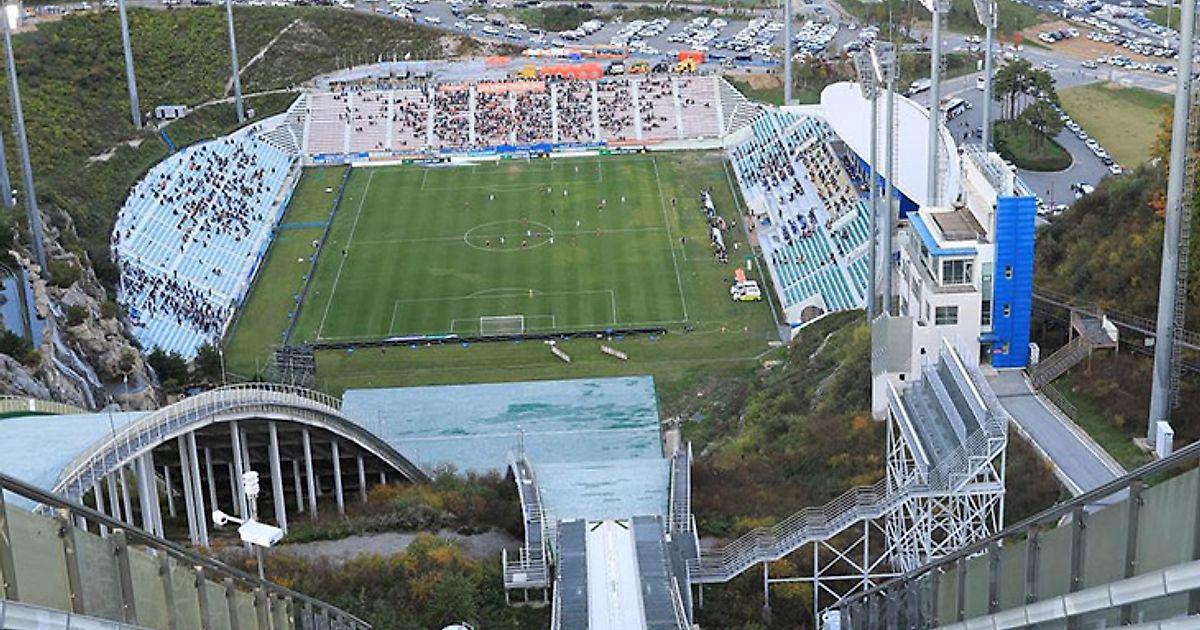Олимпийская арена «Альпензия» – новый претендент на статус самого странного стадиона мира. В ближайшие дни (и даже сегодня) там разыграют медали зимних Игр-2018 в прыжках с трамплина, а с весны комплекс адаптируют под матчи чемпионата Кореи по футболу. Поле расположено ровно в том месте, куда приземляются прыгуны – стадион «два в одном».