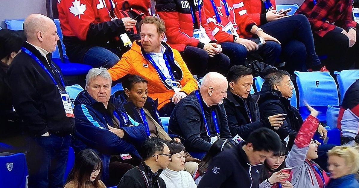 Гус Хиддинк на конькобежном спорте в Пхенчхане