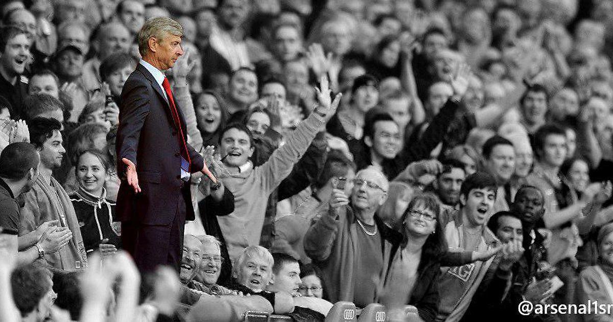 Арсен Венгер посреди фанатов «МЮ», после того, как его дисквалифицировали за поведение, 2009.